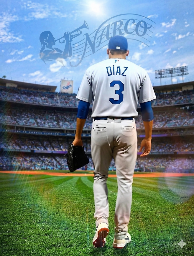 다저스타디움의 9회 초, 전광판에 'DIAZ 3'가 새겨지고 불펜 문이 열렸다. 그 순간, 그의 상징과도 같은 등장곡 '나르코(Narco)'의 강렬한 트럼펫 선율이 경기장을 가득 채웠다. 특히 이날은 불펜 근처 관전석에서 트럼펫 연주자 타티아나 테이트가 직접 라이브 연주를 선보여 분위기를 더욱 고조시켰다.