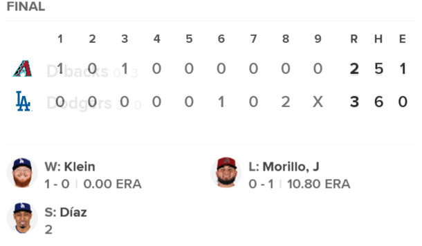 디아즈는 첫 타자 카를로스 산타나를 상대로 강력한 슬라이더를 구사하며 첫 삼진을 잡아냈다. 이어 알렉 토마스에게 볼넷을 내주며 잠시 주춤하는 듯했으나, 곧바로 평정심을 되찾고 조던 로러를 삼진으로 처리했다. 마지막 타자 케텔 마르테를 유격수 땅볼로 유도하며 경기를 끝낸 디아즈는 1이닝 2 탈삼진 무실점으로 다저스 소속 첫 세이브를 올렸다.