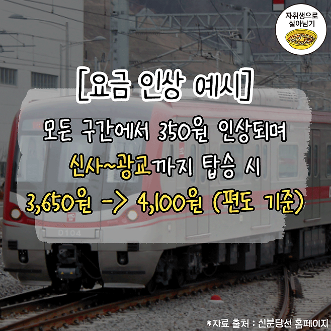 10월 7일부터 조정되는 신분당선 요금 인상 정보