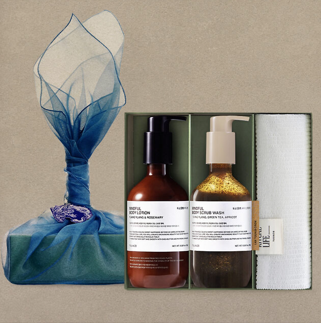 2024 푸른 용의 기운을 담은 고급스러운 보자기 포장으로 톤28의 다양한 아이템을 한 번에 만나볼 수 있는 기프트 세트. 민감 피부도 사용 가능한 병풀&녹차씨 성분의 바디 스크럽 워시와 일랑일랑&로즈마리 향 조합의 바디로션, 부드러운 데일리 샤워타월이 포함된 든든한 구성.