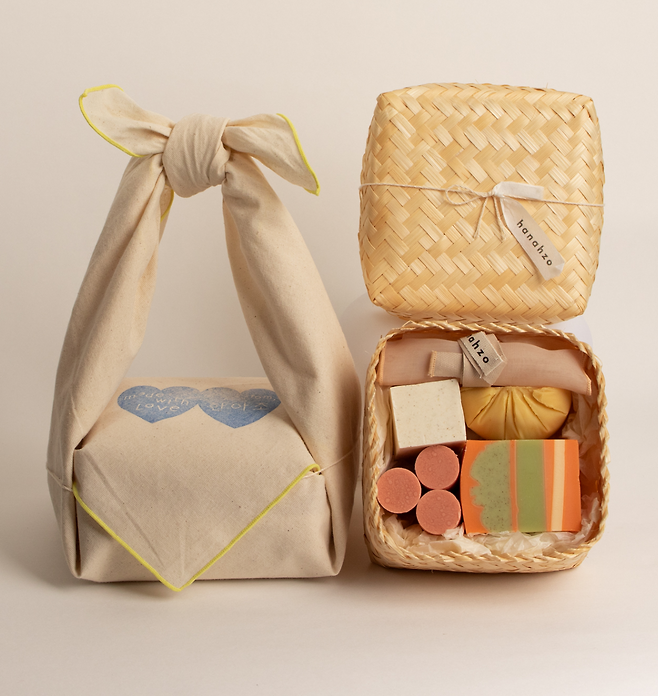 명절 선물 느낌이 물씬 나면서 환경까지 생각한 선물을 찾는다면 추천하는 '한아조 솝파우치 꾸러미'. 한아조의 세안용 비누와 거품을 풍성하게 만들어주는 솝 파우치가 함께 들어있는 구성으로, 명절 음식을 보는 듯한 귀여운 비주얼로 많은 주목을 받고 있어.