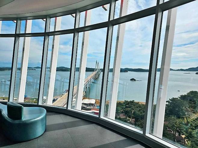 전망 공간은 전면 통유리로 되어 있어 어느 위치에서든 시야가 막힘없이 열린다. 탁 트인 바다와 낮은 섬들, 포구 일상의 풍경이 이어지며 태안 남부의 모습을 360도로 둘러볼 수 있다.