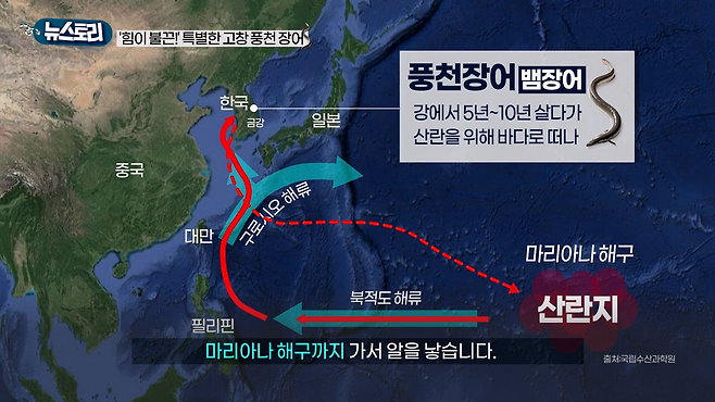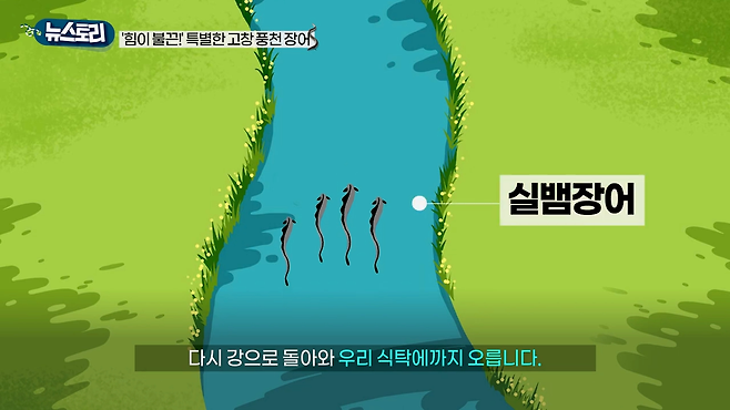 알에서 나온 실뱀장어는 다시 강으로 돌아와 우리 식탁에까지 오릅니다.