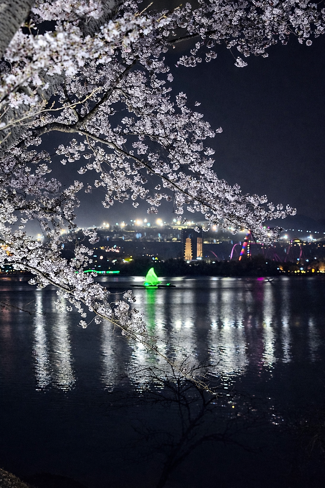 낮보다 화려한 밤, 조명 아래 빛나는 밤 벚꽃의 묘미