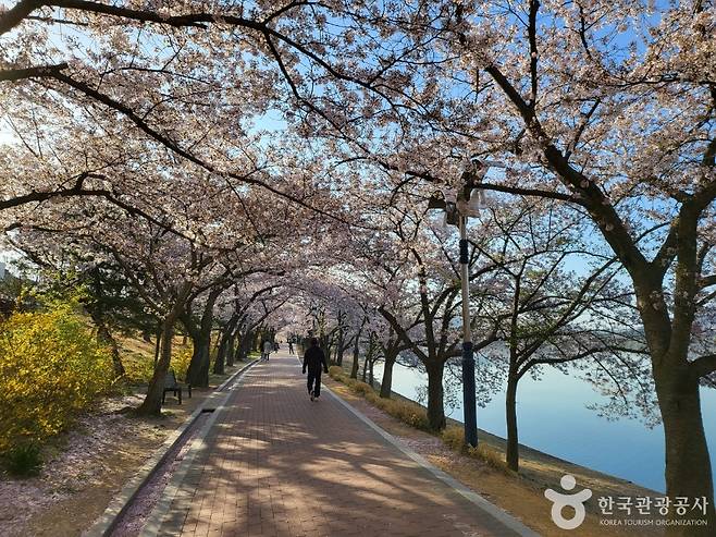 보문호 주위에는 호수 뷰를 끼고 양옆으로 벚꽃이 터널을 이루는 양방향 벚꽃길이 곳곳에 조성되어 있습니다. 이 길을 따라 자전거를 타거나 천천히 드라이브를 즐기다 보면 성큼 다가온 봄의 기운을 온몸으로 체감하게 됩니다.