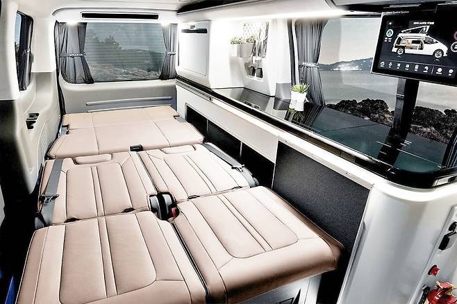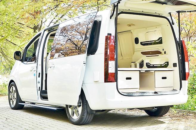 현대차의 스타리아는 외관부터 카니발과는 다른 압도적인 크기를 자랑한다. 사실 수치상으로 보면 엄청난 차이가 아니지만, 아무래도 스타리아의 특장점이라고 할 수 있는 낮은 벨트라인 탓에 거대해진 측면 윈도우 라인이 더 도드라지게 보이는 원인인 듯하다. 그런데, 이런 스타리아가 짐차로만 쓰이기엔 아깝다고 느끼는 이가 많은 것으로 보인다. 바로 캠핑카의 역할이다.