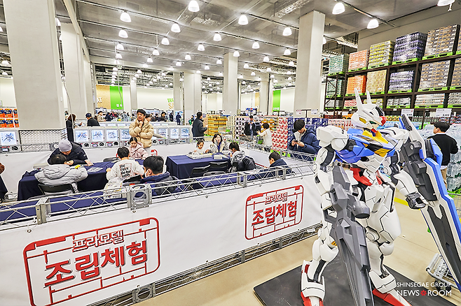 고객들은 거대한 건담 로봇과 함께 인증샷을 찍고 다양한 상품들을 구경했다. 한 켠에 조성된 ‘프라모델 조립체험’ 부스에는 어른 아이 할 것 없이 끊임없는 발길이 이어졌다.