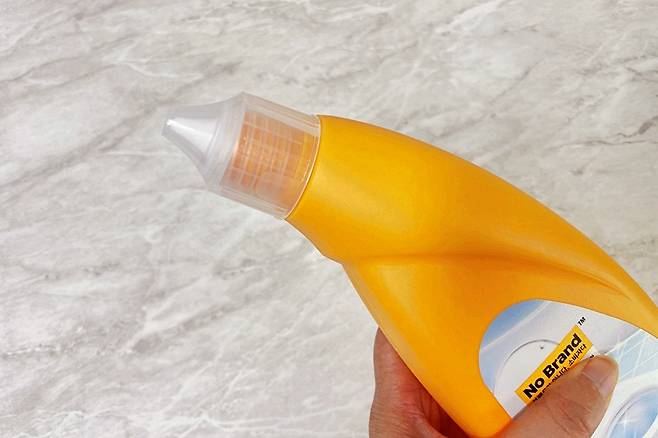 입구 모양은 새 부리처럼 생겼는데 이 모양 때문에 줄눈에 바를 때 편하답니다. 세정제가 묽은 편이라 살짝 기울기만 해도 잘 나옵니다. 따라서 양 조절이 필요해요.