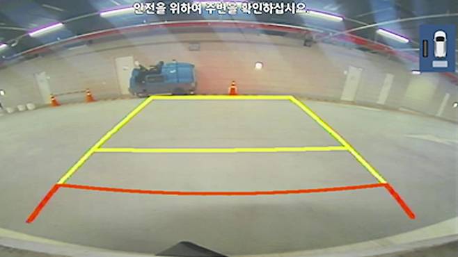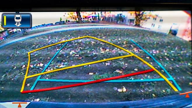 후방 카메라에는 대개 파란선, 노란선, 빨간선 등의 가이드라인이 함께 표시된다.