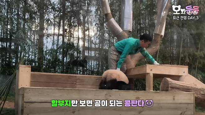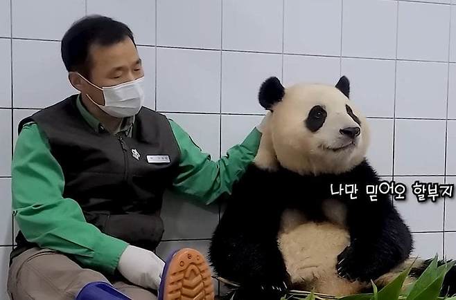 '오와둥둥'에서는 사육사들이 출연하면 자막으로 '판다 이모 오바오', '작은 할부지 송바오', '판다 삼촌 이바오' 라고 표현하는데요. 강바오 할아버지만 이름 없이 '푸루후 할부지'라고만 적혀 있었기 때문입니다.
