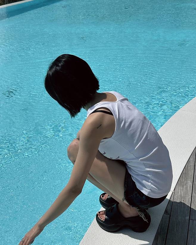 수영장 옆에서도, 침대 위에서도 스타일이 흐트러짐 없이 유지되는 모습이 정말 인상적이에요.