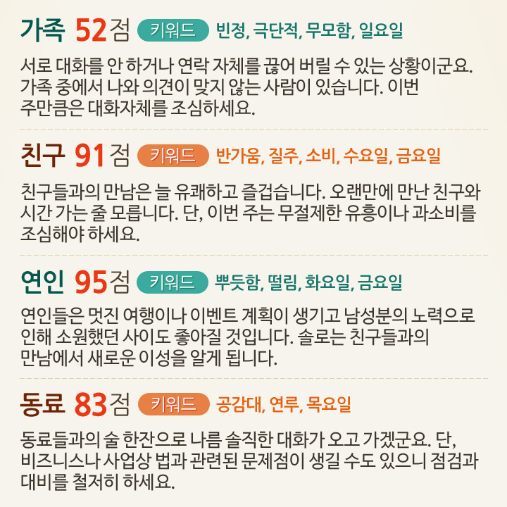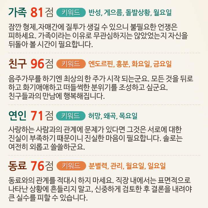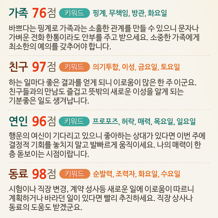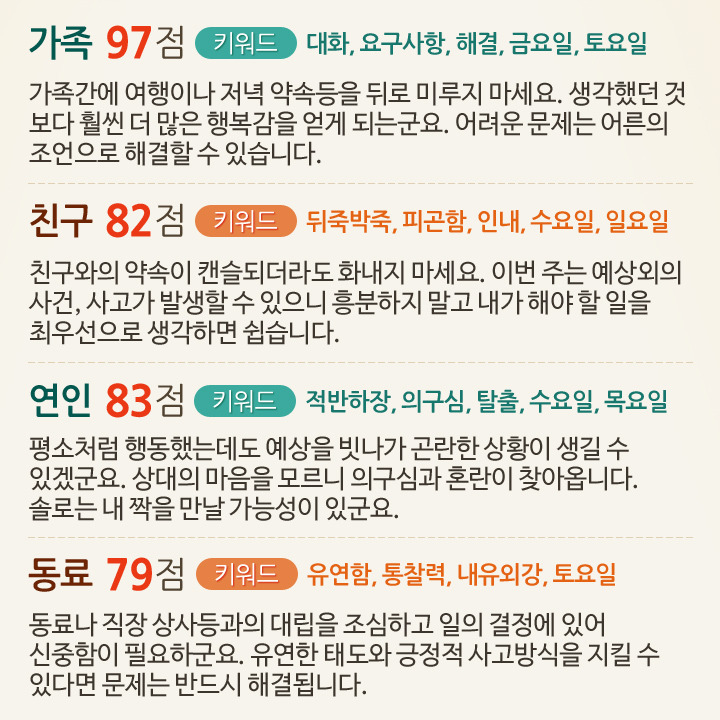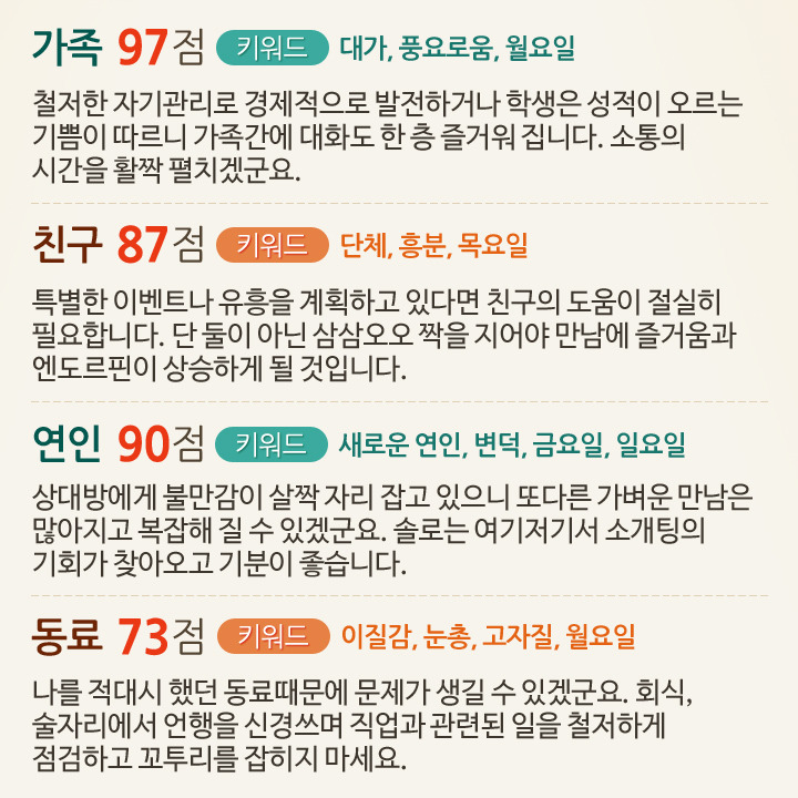 6월 3일부터 9일까지 대인관계운세