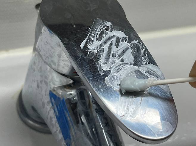 물로 인한 얼룩이 잘 지는 수전에 바세린, 치약 섞은 것을 발라 보세요. 소량만 발라도 충분합니다.