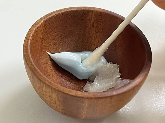 치약과 바세린은 1:1 비율이 되게 맞춘 후 작은 그릇에 덜어 잘 섞습니다.