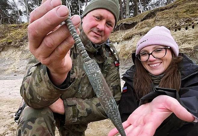 폴란드 카미엔역사박물관은 16일 조사 보고서를 내고 약 2500년 전 만들어진 금속 단검을 소개했다. 섬세한 무늬가 들어간 이 단검은 아마추어 고고학자 커플이 지난달 30일 발트해에 면한 해변에서 금속탐지기로 발견했다.