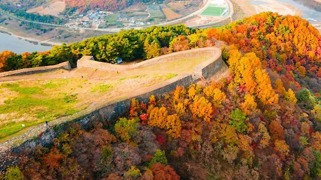 온달관광지의 중심에는 실제 고구려 유적인 온달산성이 있습니다. 성산 기슭에 남아 있는 이 산성은 단풍철이면 산 전체가 붉게 물들어, 마치 전설의 무대처럼 느껴집니다.