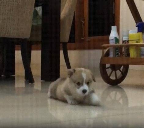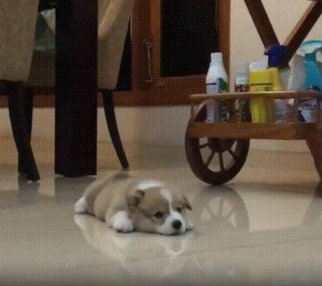 그 몇 걸음이 얼마나 큰 용기였을까요. 마치 “이쪽으로 가도 괜찮을까?”라고 묻는 듯한 눈빛과 낯선 공간에 대한 두려움도 살짝 묻어납니다. 그리고 얼마 지나지 않아, 강아지는 결국 털썩—작고 부드러운 몸이 바닥에 그대로 누워버립니다. 그 순간, 힘이 빠진 듯한 표정 속에는 살짝 억울한 듯한 기색도 담겨 있습니다. "이거 생각보다… 너무 힘든데?" 하는 듯 말이죠.
