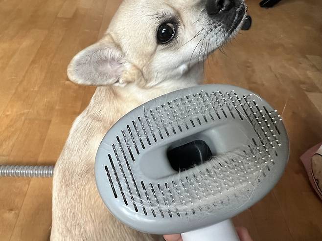 초반에는 소음 때문인지 시루가 적응을 잘 못했어요. 자꾸 도망가려고 해서 간식을 옆에 준비한 다음에 도망가고 싶어 하는 낌새가 보일 때마다 간식을 줬더니 지금은 얌전하게 있어요. 또, 이발기가 구성품으로 있어 셀프 미용도 같이하게 되었는데요. 처음에는 서툴렀는데 지금은 샵에 안 갈 정도로 숙련되어서 돈을 아끼고 있어요. 강아지 털 날리는 거로 고민하시는 분들에게 추천해요.