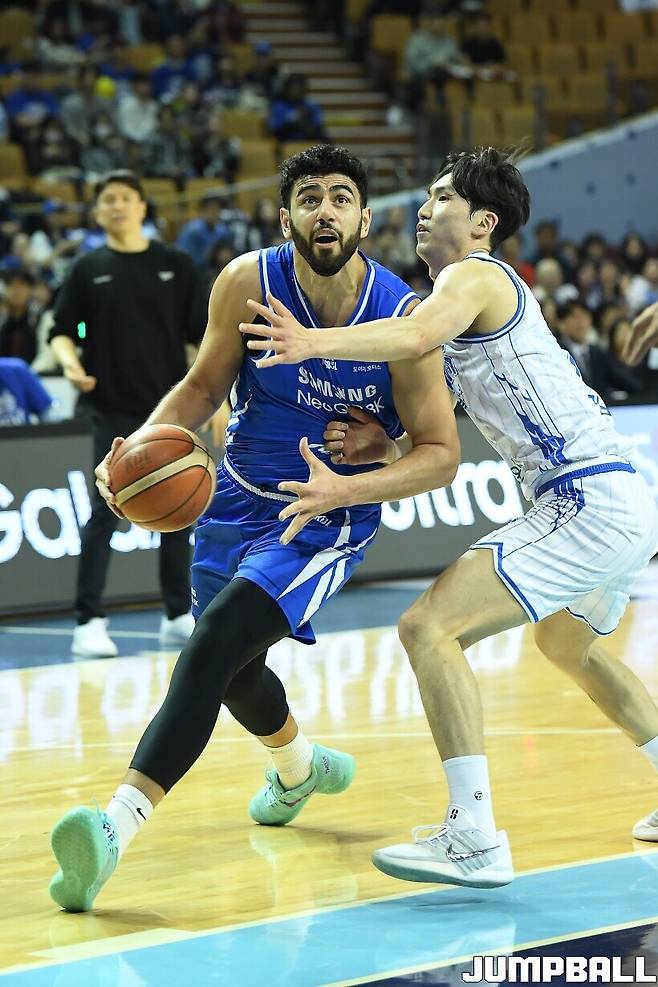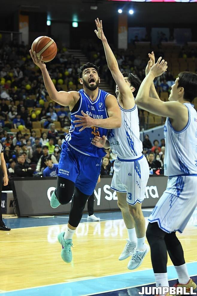 [점프볼=잠실/유용우 기자] 8일 잠실실내체육관에서 열린 2025-2026 LG전자 프로농구 서울 삼성과 대구 한국가스공사의 경기, 한국가스공사가 샘조세프 벨란겔의 29점 4리바운드 8어시스트 1스틸 활약을 앞세워 80-73으로 삼성에 승리했다. 라건아는 27점 16리바운드 4어시스트 2블록을 기록하며 팀의 정규리그 마지막 경기를 승리로 이끌었다.