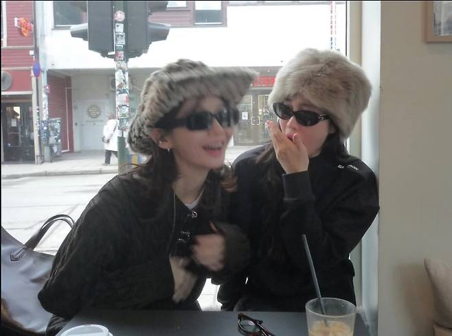 여기에 투명한 안경과 롱 네크리스, 그리고 와이드한 블랙 니트로 레이어드 룩을 연출하며 따뜻하면서도 시크한 겨울 스타일링을 보여줬습니다.