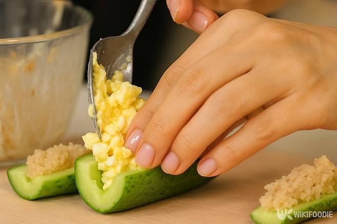조리법은 단순하다. 오이를 반 갈라 속을 파내고, 그 안에 밥과 토핑을 채우는 방식이다. 겉보기엔 샌드위치처럼 간단하지만, 먹고 나면 의외로 포만감이 크다. 속에 들어가는 내용물은 입맛대로 바꿀 수 있다. 참치마요와 에그마요는 그중에서도 가장 실패 없는 조합이다.