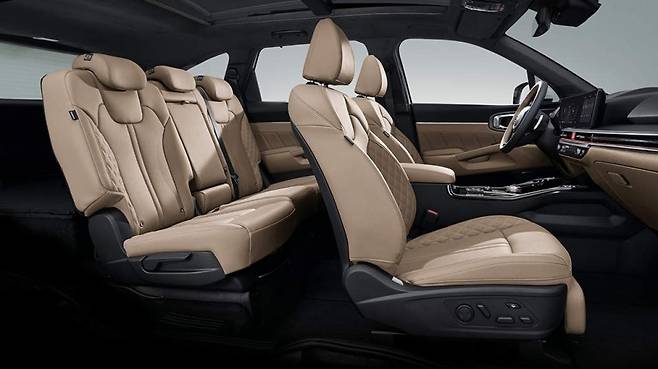 인테리어는 깔끔하고 세련된 디자인으로 구성되었다. 10.25인치 디지털 계기판과 10.25인치 터치스크린 인포테인먼트 시스템이 기본 적용되며, 고급 소재를 사용하여 편안하고 안락한 분위기를 준다. 2열과 3열 시트 공간도 넓어 가족 여행에도 적합하다.