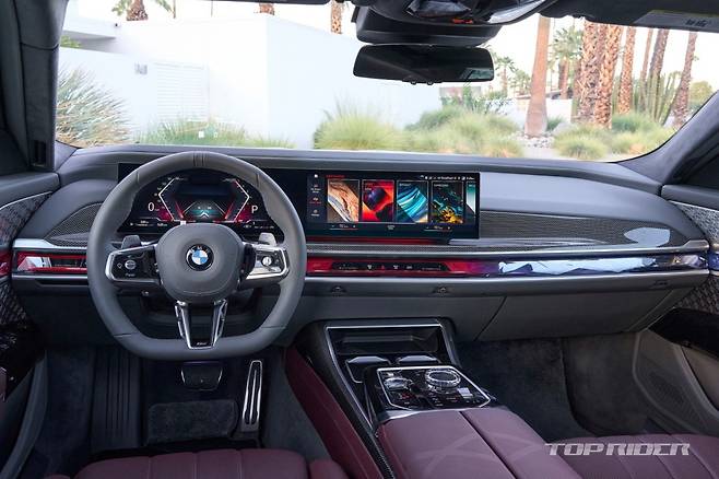 최상급 BMW 인디비주얼 그란 루쏘 실내 풀-레더 메리노 시트 또는 메리노-울-케시미어 조합 시트가 탑재된다. 아마노레, 타투포, 울-케시미어 시트를 선택하면 헤드라이너와 스티어링 휠 색상이 시트 컬러와 다른 투톤이다. 시트는 총 6개의 컬러 중에서 선택할 수 있다.