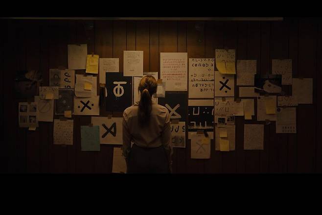 국내 개봉 소식과 함께 공개된 1차 예고편은 기묘한 암호로 가득한 수사 보드 앞에 선 FBI 요원 ‘리’(마이카 먼로 분)의 모습을 조명하며 인물의 시선을 통해 영화 안으로 우리를 초대한다. 음산한 사이렌 음과 함께 인물의 손끝에서 이어진 장면마다 의미심장한 단서가 나열된다.