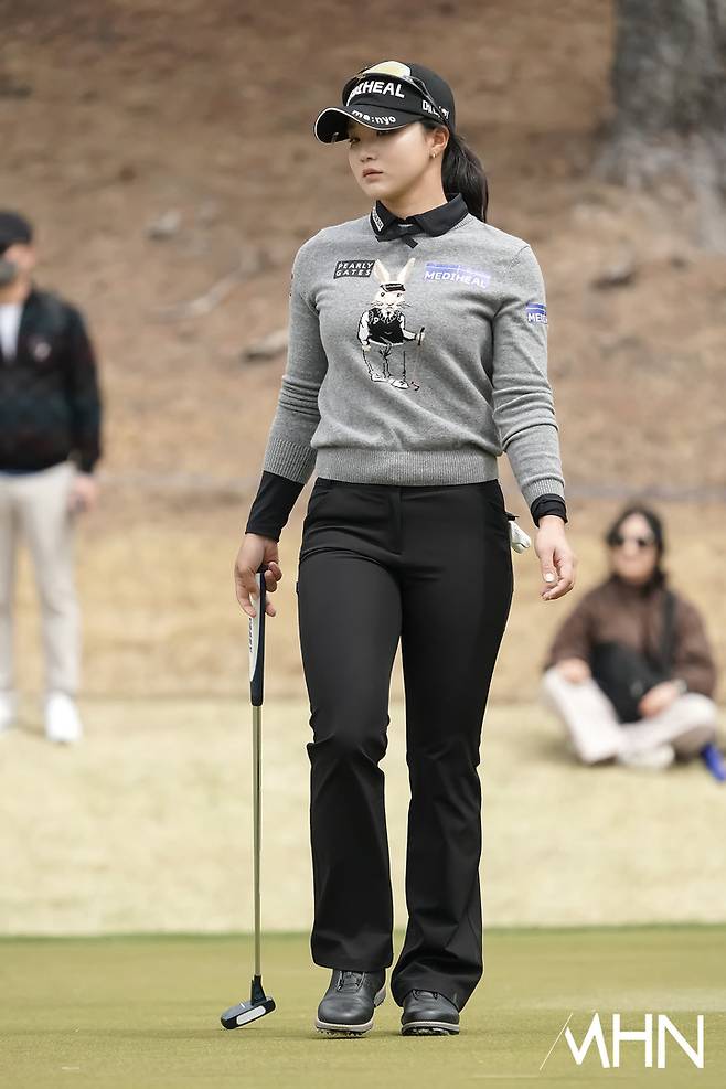 정지효(메디힐)가 2번홀 경기를 펼치고 있다.