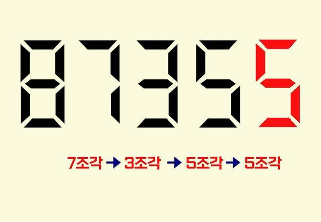 앞에 디지털 숫자의 조각 개수가 다음 숫자입니다.