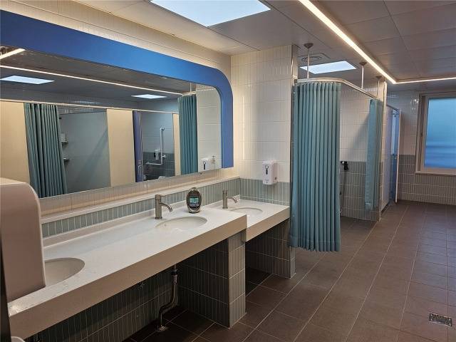 광주광역시 은혜학교 맘편한 화장실은 지체장애 학생을 위해 턱을 제거하고 휠체어 사용을 위해 일반 장애인 화장실보다 넓고 크게 만들었습니다. 특히 학생들의 아이디어를 설계에 반영해 편안하고 편리한 화장실을 조성했습니다.