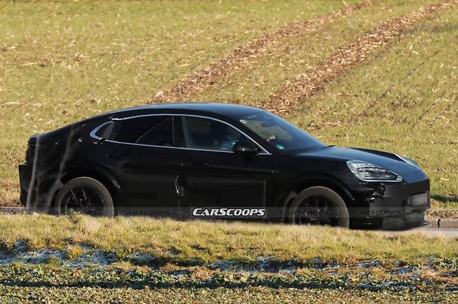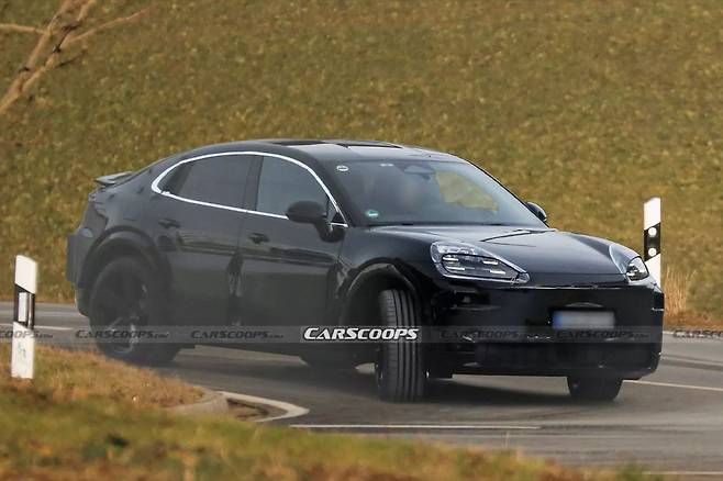 기존 카이엔 EV 프로토타입에서도 루프라인이 비교적 스포티하게 다듬어졌지만, 이번에 포착된 쿠페 모델은 한층 더 공격적인 디자인을 선보인다.
