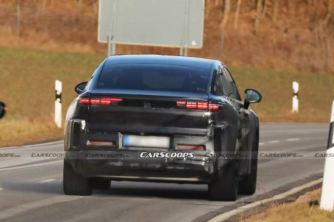 반면, 후면부는 기존 카이엔 EV 프로토타입과 유사한 형태를 유지하고 있으며, 테일라이트와 하단 범퍼 디자인에서도 큰 차이는 없는 것으로 보인다.