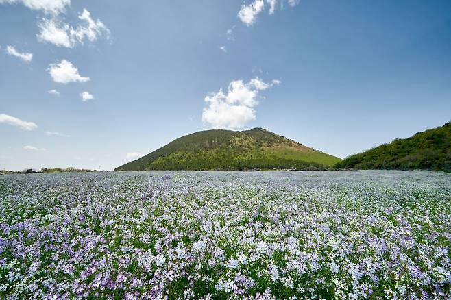 4월 초중순, 성읍의 초원 위로 연보랏빛 갯무꽃이 흐드러지게 피어납니다. 부드럽고 따뜻한 색감 덕분에 동화 속 주인공이 된 듯한 웨딩 스냅을 건질 수 있죠.