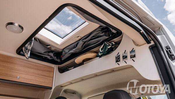이러한 설계를 적용한 이유는 부족할 수 있는 잠자리 때문이다. 이를 해결하기 위해 루프 팝업 텐트를 설치해 취침 인원을 성인 4명까지 늘릴 수 있다.