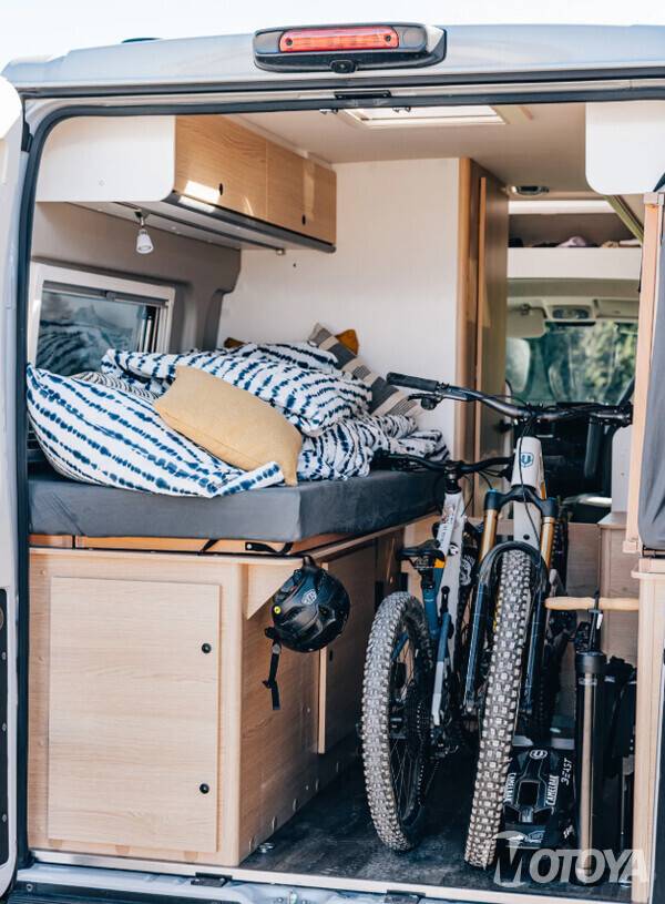 침대는 변환이 가능한 구조로 매트리스와 갈빗살 프레임을 걷어 내면 오토바이, 자전거, 스노보드, 스키, 카약, 카누, 낚싯대 등을 실을 수 있는 넓고 긴 공간이 제공된다.