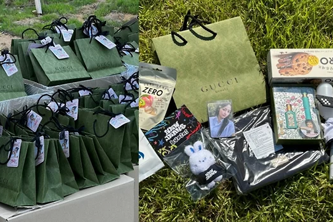 뉴진스는 이번 사전녹화에서 팬들에게 구찌 향수와 파우치, 뉴진스의 상징인 '버니니' 토끼 캐릭터 키링, L사의 제로 과자 등을 선물했다.