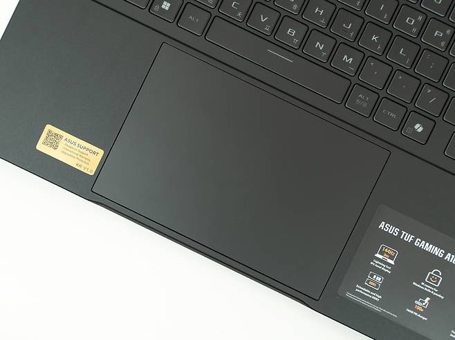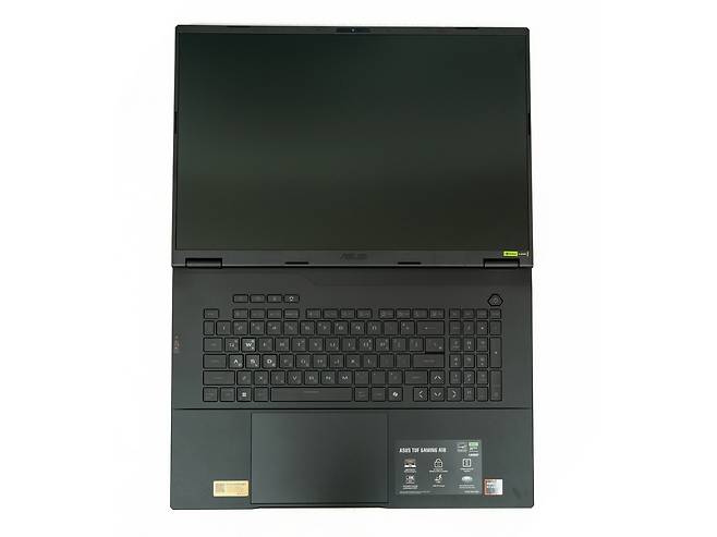 ASUS TUF Gaming A18의 상판은 알루미늄 합판으로 제작되어 고급스러운 느낌을 주면서 앞서 설명드린 TUF의 철학처럼 뛰어난 내구성을 자랑합니다. 18인치라는 대화면 크기에도 불구하고 2.6kg의 무게와 26.7mm의 두께로 휴대성을 크게 해치지 않습니다.
