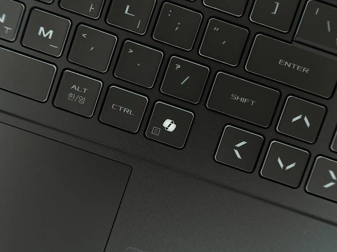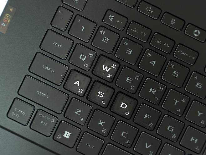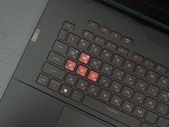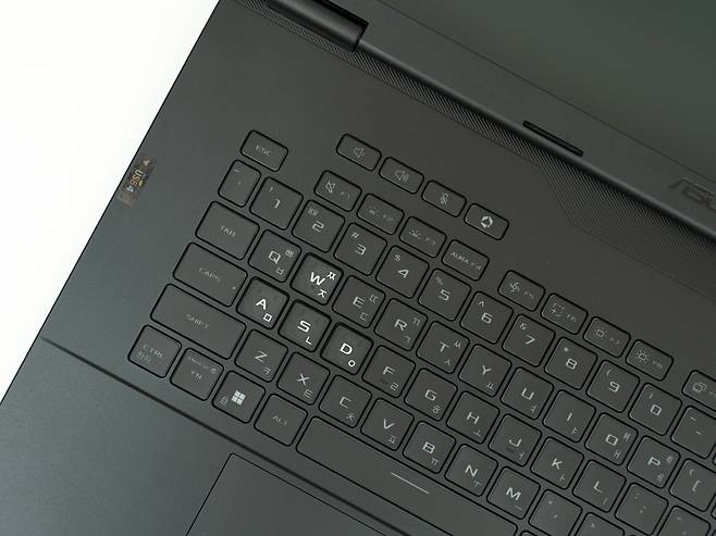 18인치의 넓은 폼팩터를 활용하여 풀사이즈 키보드와 숫자패드를 동시에 제공합니다. 게이밍노트북답게 WASD 키에는 시각적 포인트를 주어 게임 시 편의성을 높였는데요, 키보드는 2천만 회 키프레스를 견딜 수 있는 내구성을 갖추고 있고 각 키의 스트로크와 피드백이 타이핑과 게임 모두에 최적화되어 있습니다.