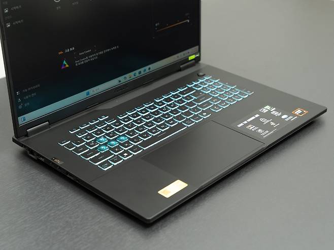 하단과 전면부에는 대형 배기구가 설계되어 공기 흐름을 최적화하고 있습니다. 이는 게이밍노트북에서 가장 중요한 요소 중 하나인 쿨링 성능을 위한 설계로, 장시간 고부하 작업 시에도 안정적인 성능을 유지할 수 있도록 돕습니다.