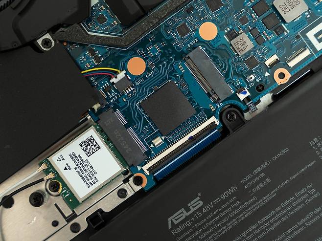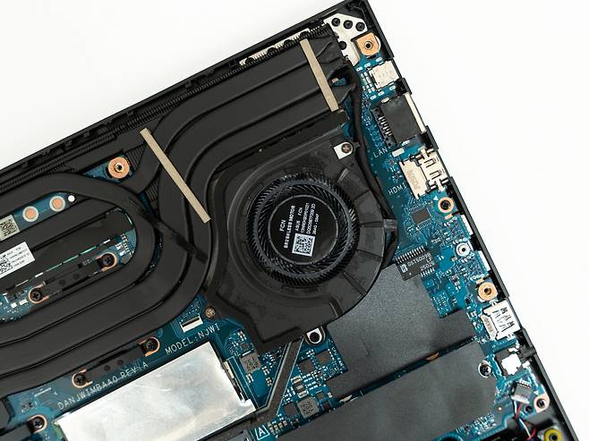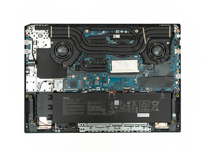 게이밍노트북의 가장 큰 과제는 발열 관리입니다. ASUS TUF Gaming A18은 이 문제를 해결하기 위해 새로운 쿨링 시스템을 적용했는데요, 먼저 노트북 후면부 전체에 걸쳐 풀사이즈 히트싱크를 장착하였습니다. 이는 CPU와 GPU에서 발생하는 열을 효과적으로 분산시켜 전체적인 온도를 낮추는 역할을 합니다.