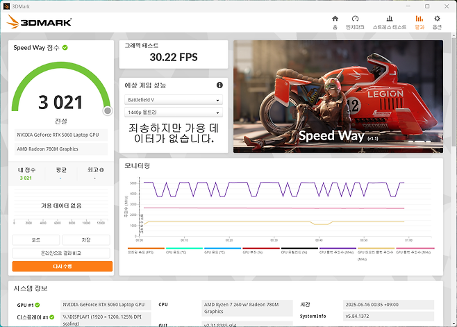 3Dmark의 대표적인 벤치툴 테스트에서는 다음과 같은 결과를 보였습니다: