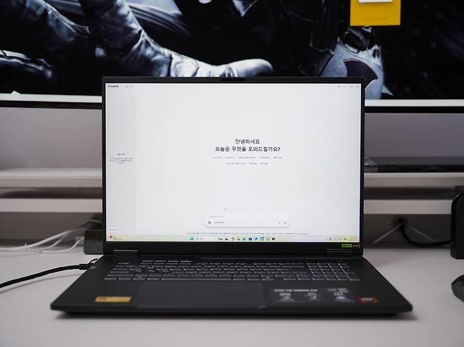키보드에는 Windows 11의 Copilot을 바로 실행할 수 있는 전용 단축키가 제공됩니다. AMD XDNA NPU가 탑재된 덕분에 로컬 AI 작업 처리가 가능하며, Copilot을 통해 문서 작성, 이미지 편집, 코딩 어시스턴트 등 다양한 생산성 향상 기능을 활용할 수 있습니다.
