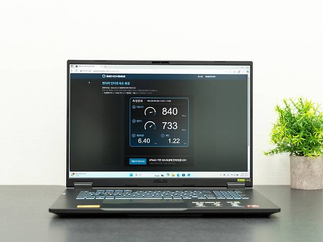 802.11ax (Wi-Fi 6E) 무선랜을 통한 속도 테스트에서는 기가비트급 속도를 안정적으로 유지했습니다. 특히 온라인 게임에서 중요한 지연시간(latency)도 매우 낮은 수준을 보여주었습니다.