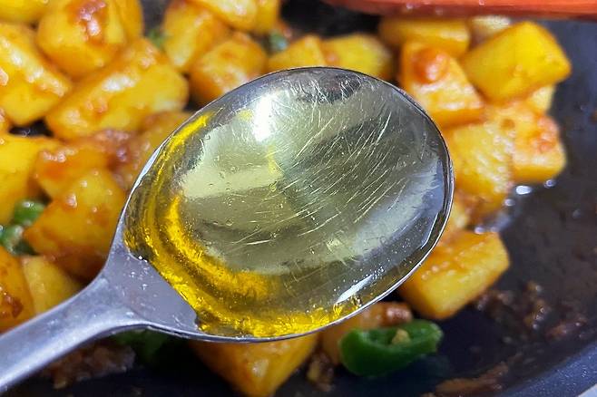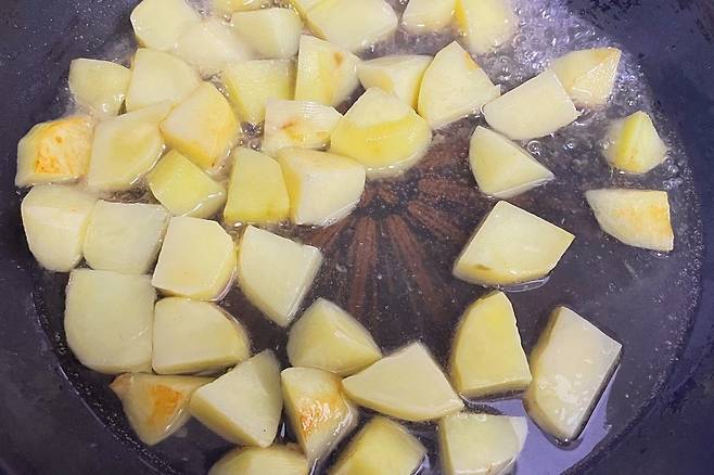 그러면 감자가 80% 정도 익었기 때문에 오래 볶을 필요 없어 시간도 단축되고요. 양념만 베도록 졸여주면 되니까 부서짐 없이 만들 수 있습니다.