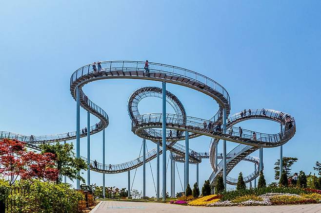 포항의 대표적인 현대적 명소 중 하나인 스페이스워크는 하늘 위를 걷는 듯한 경험을 선사하는 국내 유일의 워킹 롤러코스터입니다.
