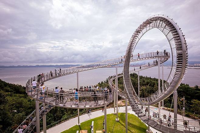 낮에는 푸른 하늘과 바다를 배경으로 이색적인 산책을 즐길 수 있고, 밤이 되면 LED 조명이 켜지면서 미래적인 분위기를 자아내 더욱 매력적입니다.