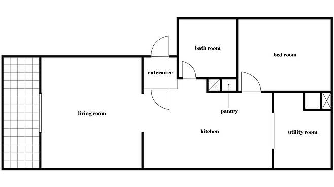 30년 된 아파트지만 단지가 깔끔하고 관리가 잘되어 있어 마음에 들었어요. 그러나 안으로 들어와 보니 난감한 '세입자용 인테리어'가 되어 있더라고요. 요새는 잘 하지 않는 소폭 합지 도배에, 아무렇게나 깔려있는 장판, 스테인리스로 마감된 가장 저렴한 유광 싱크대, 페인트만 덕지덕지 발라져 있는 방문 등 모두 처참해 보였습니다.
