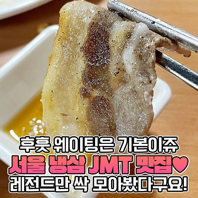 그래서 이번에 서울에서도 ‘냉삼’으로 둘째가라면 서러울만큼 입소문이 자자한 맛집들을 꼽아봤어요. 오늘 소개해드릴 가게들은 웨이팅까지 감수할 만큼 짱맛이라 하니 다들 기대하시라구요!