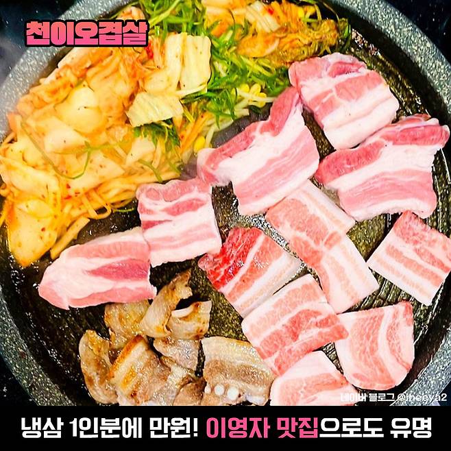 서교동에서 가장 오래된 삼겹살집, 무려 2003년부터 영업중인 천이오겹살은 이영자 맛집으로도 유명해요! 삼겹살 1인분에 만원으로 가성비가 아주 훌륭한데다 1등급 이상의 국내산 생고기를 최소 7일간 숙성, 급냉한다고 하니 그저 흐-뭇!